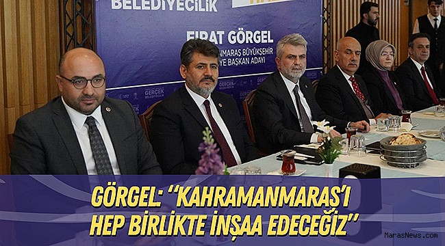Toplantıda konuşan Kahramanmaraş Büyükşehir Belediye Başkan Adayı Av. Fırat Görgel, “Kahramanmaraş’ı yeniden değil, yeni Kahramanmaraş’ı oluşturabilmek için inşallah hep beraber çalışacağız. Allah nasip ederse bu kutlu görevin her saniyesini değerlendirebilmek için gayret edeceğiz” dedi.