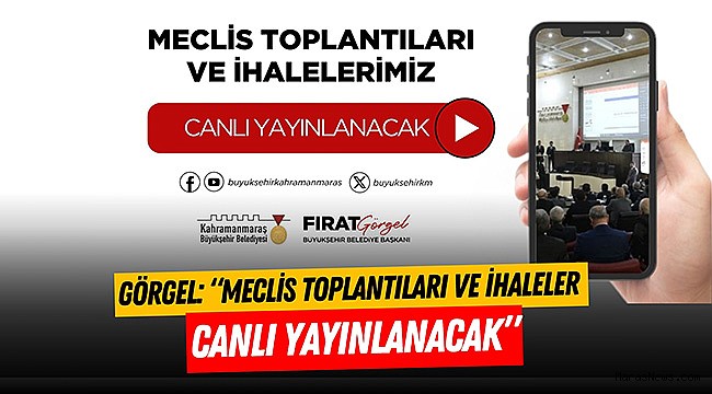 Göreve geldiği günden itibaren açık, şeffaf, katılımcı ve hesap verebilir bir yönetim anlayışıyla faaliyetlerini sürdüren Kahramanmaraş Büyükşehir Belediye Başkanı Fırat Görgel, Büyükşehir Belediyesi Olağan Meclis Toplantıları ve ihalelerin canlı yayınlanacağını duyurdu. Alınan kararla Büyükşehir Belediyesi ve vatandaşlar arasındaki iletişimin daha da güçleneceğini belirten Başkan Görgel, “Göreve geldikten sonra gerçekleştirdiğimiz ilk olağan meclis toplantımızda oy birliğiyle aylık meclis toplantılarımızın canlı olarak yayınlanması noktasında karar almıştık. İnşallah bundan sonraki tüm meclis toplantılarımızı vatandaşlarımıza canlı bir şekilde aktaracağız. Kahramanmaraş’ımızı açık ve şeffaf bir şekilde yönetmek istiyoruz. Vatandaşlarımızın da meclisimizde aldığımız kararlara vakıf olmasını arzu ediyoruz. Ayrıca Büyükşehir Belediyemizde yapacağımız tüm ihalelerimizin de vatandaşlarımız tarafından takip edilebilmesi açısından canlı yayınlama kararı aldık. İnşallah bundan sonra yapılacak açık ihalelerimizi vatandaşlarımız canlı yayın vesilesiyle takip edebilecek. Böylece Büyükşehir Belediyemiz ve vatandaşlarımız arasındaki iletişim ve entegrasyonun daha kuvvetli olmasını hedefliyoruz. Şehrimize hayırlı olsun” ifadelerini kullandı.