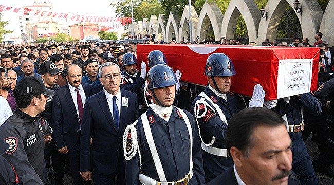 Kahramanmaraş Büyükşehir Belediye Başkanı Hayrettin Güngör, Van’ın Çatak ilçesinde hain terör örgütü ile çıkan çatışmada şehit olan Jandarma Uzman Çavuş Kürşat Sert’in baba ocağı Elbistan’da düzenlenen cenaze törenine katıldı. Hocazade Mahalle Camii’nde düzenlenen cenaze töreninde İçişleri Bakan Yardımcısı İsmail Çataklı’nın yanı sıra Vali Ömer Faruk Coşkun, Milletvekili Sefer Aycan, Jandarma Genel Komutan Yardımcısı Orgeneral Ali Çardakçı, Garnizon Komutanı Tuğgeneral Emin Mehmet Terzioğlu, KSÜ Rektörü Prof. Dr. Alptekin Yasım, İl Emniyet Müdürü Salim Cebeloğlu, ilçe belediye başkanları, STK temsilcileri ve çok sayıda vatandaş da yer aldı. Kılınan cenaze namazının ardından şehit Kürşat Sert, Hocazade Mezarlığı’nda toprağa verildi.