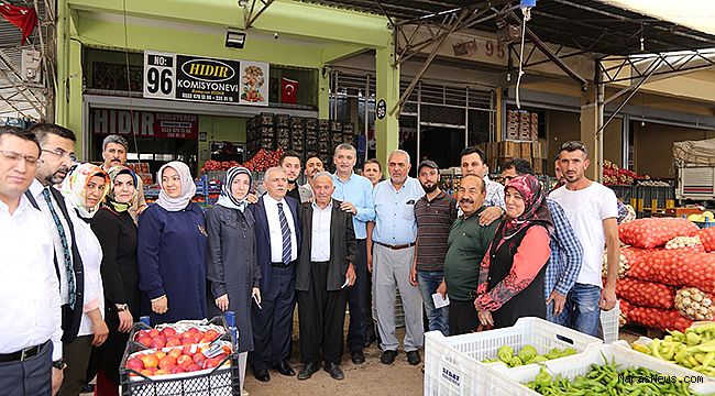 Güvenç, daha sonra haldeki esnafları tek tek ziyaret etti.