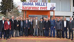 ve esnafları ziyaret ederek Cumhurbaşkanlığı Sistemi ve Halk Oylaması süreciyle