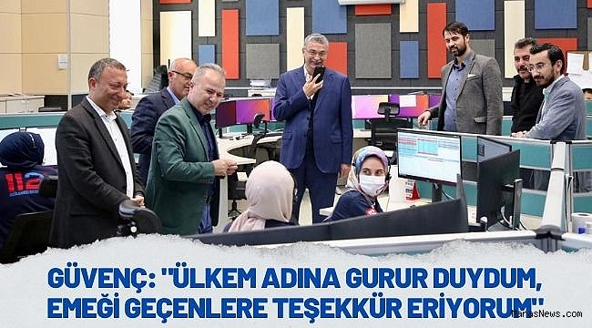 Kahramanmaraş 112 Acil Çağrı Merkezi Müdürlüğünü ziyaret ederek ve çalışanlarla bir süre sohbet eden Ak Parti Kahramanmaraş Milletvekili ve TBMM İçişleri Komisyon Başkanı Celalettin Güvenç; sistemin çalışmasından ve gördüğüm teknolojiden etkilendim ve gurur duydum dedi.