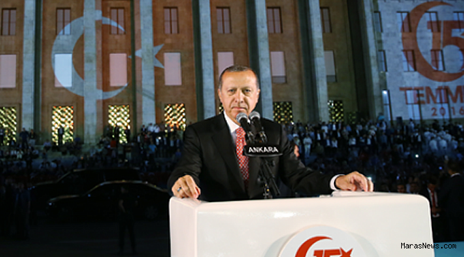 Erdoğan, hain FETÖ'cülerin darbe girişiminde bulunduğu gecede halkın tarih yazdığını dile getirdi. Cumhurbaşkanı Recep Tayyip Erdoğan "Önünde, sağında, solunda onlarca kişi vurulurken geri dönmeyi bir an bile akıllarından geçirmediler. 'Geri dön" diyenlere, 'Bugün ölmeyeceksek ne zaman öleceğiz' cevabını verdiler. Ahhh şu köprülerin dili olsa da konuşsa, şehit kanlarıyla sulanan her karış toprağın dili olsa da yiğitlik nasıl olur tüm dünyaya anlatsa" ifadelerini kullandı.