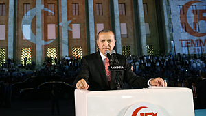 Cumhurbaşkanı Recep Tayyip Erdoğan, 15 Temmuz gecesi göğsü iman dolu halkın, imansız darbecileri bozguna uğrattığını söyledi. Cumhurbaşkanı Erdoğan "O gece milletimiz imanıyla, dünyanın en modern silahlarını yendi. Tekbirlerle tankın üzerine giden bir milleti kim esir edebilir. Sırtındaki tişörtünü tankın egzoz borusunun içine tıkamak suretiyle onu çalışmaz hale getiren imandır, iman" şeklinde konuştu.