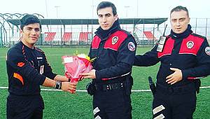 eden Emniyet Güçlerine müsabaka öncesi çiçek takdim ederek “İnsanlık dışı terör