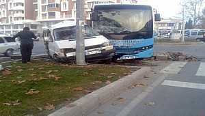 belediye otobüsü ve minibüs refüje çıktı. Kazada sürücü Orhan Vural ile yanında