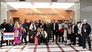 Kahramanmaraş Büyükşehir Belediye Başkanı Hayrettin Güngör, Milli Mücadelenin 102. yıl dönümü kutlama etkinlikleri kapsamında Türkiye’nin çeşitli şehirlerinden ve yurt dışından gelen halk oyunları ekiplerini misafir etti. Meclis Toplantı Salonu’nda gerçekleşen buluşmada Bergama Gümüş Efe Zeybek Topluluğu, Kastamonu Merkez Gençlik Spor Kulübü Halk Oyunları Topluluğu, K.K.T.C. Alaniçi Kadınlar Derneği Halk Dansları Topluluğu, Ulupamir Kökbörü Spor ve Halk Dansları Topluluğu ve Ankara Seymenler Kulübü oyuncuları ve temsilcileri yer aldı. Van Ulupamir (Kırgızistan) Kökbörü Spor ve Halk Dansları Topluluğu öğrencilerinden Ümmügülsüm Vatan ve Fatma Zehra İlhan kısa bir kopuz dinletisi sergiledi. Başkan Güngör, ziyaret anısına halk oyunları ekiplerine çeşitli hediyeler verdi. Halk oyunları ekipleri ise kendi yörelerine ait çeşitli hediyeleri Başkan Güngör’e takdim ettiler.
