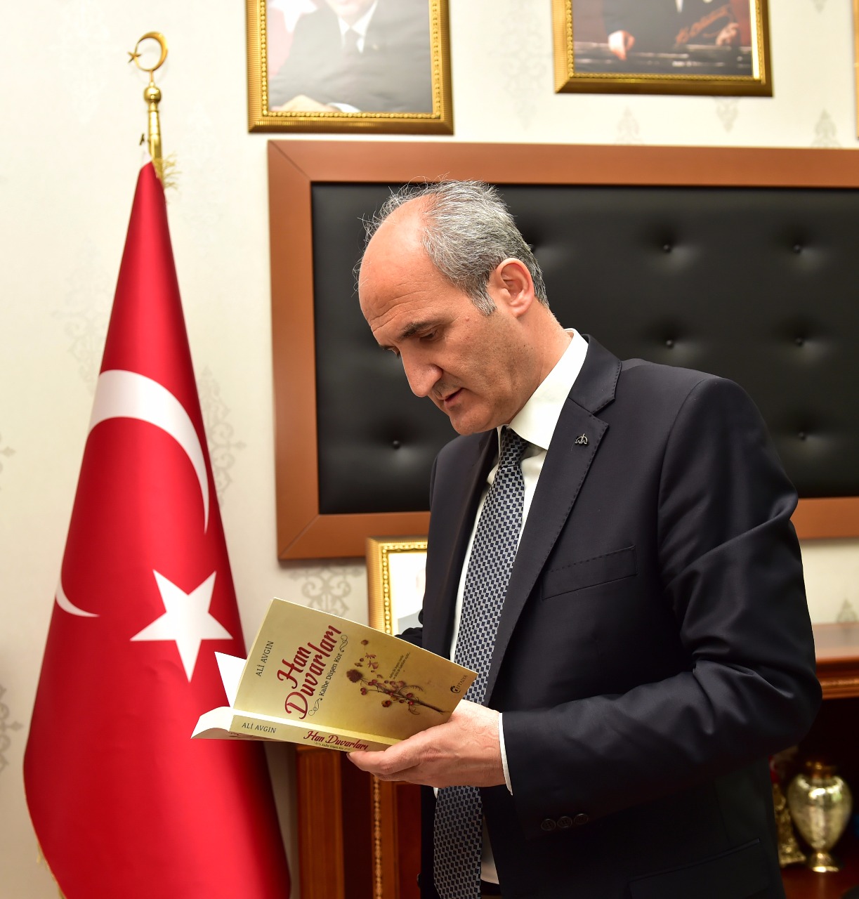 Dulkadiroğlu Belediye Başkanı Necati Okay’a romanını takdim ederek, romanda