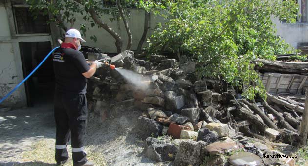 Kent yaşamında zararlıların yaşama olasılığı olan yıkık, metruk ve harabelerde de ilaçlama çalışmaları devam ediyor.