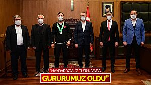 Kahramanmaraş Büyükşehir Belediye Başkanı Hayrettin Güngör, Sırbistan Belgrad’ta düzenlenen 2020 Dünya Güreş Şampiyonasında 2. olan Kahramanmaraşlı Milli Güreşçi Haydar Yavuz’u makamında ağırladı. Gençlik ve Spor İl Müdürü Cemil Boz, Kahramanmaraş Güreş Eğitim Merkezi Müdürü Şahin Hopur, Güreş Federasyonu İl Temsilcisi Ali Demir’in de yer aldığı ziyarette konuşan Büyükşehir Belediye Başkanı Hayrettin Güngör, milli güreşçi Yavuz’u tebrik etti. Başkan Güngör, “Haydar Yavuz turnuvada gururumuz oldu. Sporcumuzu tebrik ediyor, başarılarının devamını diliyorum” ifadelerini kullandı.