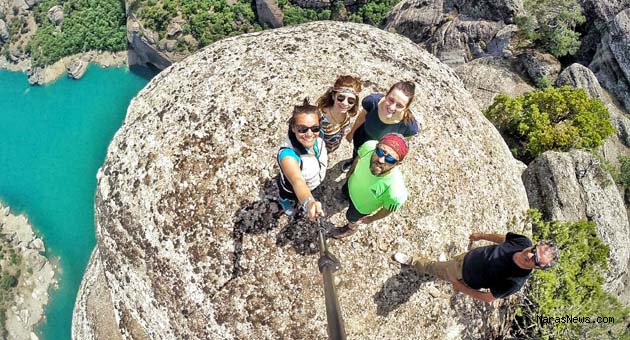 Gördüğüm her kayanın, kuşun, böceğin, iki dalın arasından gözüken Menzelet Barajı gölünün mavisinin fotoğrafını çekmeye çalıştıkça geri kaldım. Geri kaldıkça içimdeki enerji dinginleşti. Bir ara artçının da ardında kalınca, manzara beni medusa gibi etkisi altına aldı. Mavinin tonundan gözlerimi ayıramıyordum. Artçı gelip beni dürttüğünde, grubun epey gerisinde kaldığımı fark ettim. Hâlbuki geride kalmak hiç huyum değildir. Doğanın keyfini çıkara çıkara hafif bir tempo ile Ali Kayası’na vardığımızda, çizgi filmlerdeki gibi dibim düştü. Hiç gitmedim ama fotoğraflardan gördüğüm kadarıyla Norveç fiyortlarına benziyordu. Anlatmakla tarif edilebilecek gibi bir yer değil.