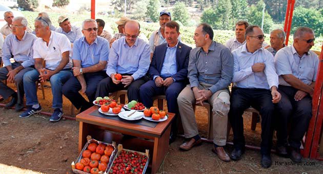Programda konuşma yapan, Kahramanmaraş İl Gıda Tarım ve Hayvancılık Müdürü İhsan Emiralioğlu, Kahramanmaraş'ın her tarafı güzel her yanının ayrı bir zenginliği olduğunu dile getirdi. Emiralioğlu, Bu bölgemizin insanlarının çalışkanlığı yeniliklere açıklığı, teknik elemanların söylediklerine kulak vermeleri başarıyı ve başarısızlığı birlikte paylaşmaları bizim için son derece önemli olduğunu belirterek, Tarım arazilerinin son derece kıt olduğunu özellikle birim alandan daha fazla ürün alınıp daha fazla kazanması gerekilen bir bölge olduğunun altını çizen Emiralioğlu, bu nedenle bu mahallerde iki tane stratejik ürün üzerinde çalıştıklarını belirten Emiralioğlu, “Bunlardan birisi çilek diğeri de domatestir. Çilekle ilgili belli bir mesafe alındı artık tüccarlar buraya kamyonlarla geliyorlar. Diğer illere çilek gidiyor. Domates konusunda birim alandan daha fazla ürün alınması konusunda sırık domates yetiştiriciliğine geçmeye çalışıyoruz. Bunula ilgili çalışma yapıyoruz. İnşallah önümüzdeki yıllarda bölgemizde yaygınlaşacak" dedi.