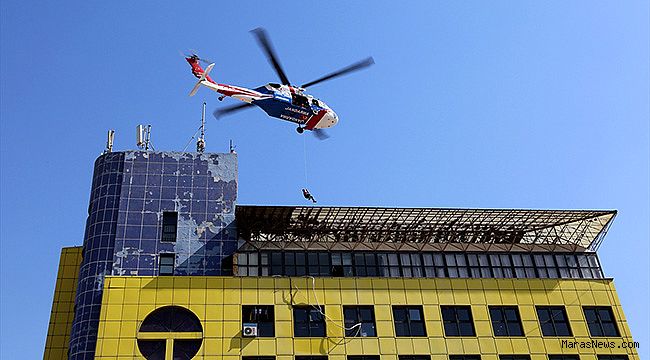 gereği, girilemeyen hasarlı bir binadan helikopterle yaralı kurtarma operasyonu