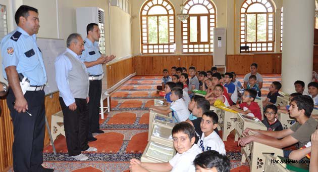 Elbistan İlçe Emniyet Müdürlüğü Trafik Tescil ve Denetleme Büro Amirliği personelleri tarafından “Çocuklar İçin Trafik Eğitimleri (Trafik Dedektifleri)” projesi kapsamında ilçe merkezindeki yaz Kur’an kurslarında eğitim gören öğrencilere temel trafik eğitimi, yaya ve yolcu güvenliği eğitimi verilmeye başlandı. Başpolis Serdal Alptuğ ve Polis Memuru İlyas Küçükfarsak tarafından verilen eğitimlerin ilki Müftülük Cami’indeki Kur’an kursunda İlçe Müftüsü Muhsin Demirel’in de katıldığı dersle başladı.