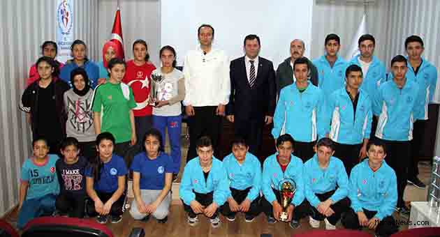 Anadolu Yıldızları Hentbol liginde şampiyon olan Kahramanmaraş Gençlikspor takımı ve antrenörleri Kahramanmaraş Valiliği Gençlik Hizmetleri ve Spor İl Müdürü Ali İhsan Kabakcı'yı ziyaret ettiler. İl Müdürlüğü Toplantı Salonunda gerçekleştirilen ziyarette İl Müdürü Ali İhsan Kabakcı, şampiyon olan sporcuları ve antrenörlerini tebrik etti. Şampiyonluk mücadelelerinde tüm takımı tek tek tebrik eden ve uzun uzun sohbet eden İl Müdürü Kabakçı, “İl müdürlüğü olarak böyle bir başarıyı yakalayan iki takımımıza da minnettarız. Elbette zorlu müsabakalar sonucunda ilimizi en iyi şekilde temsil etmiş olduğunuz için sizlere teşekkür ediyorum. Bu başarıların burada kalamaması için bundan sonraki yapılacak turnuva veya şampiyonluklarda da başarılar dileyim, hazırlık dönemleriniz için ise kolaylıklar diliyorum. Siz değerli gençlerimizin spor alanında gösterdiğiniz bu yolda da ayrıca tebrik ediyorum. diye konuştu.