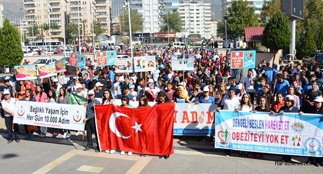 Kahramanmaraş İl Sağlık Müdürlüğü tarafından organize edilen yürüyüşe Kahramanmaraş İl Vali Yardımcısı Dr. Erkan Bulgan, KSÜ Rektörü Prof Dr. Durmuş Deveci, Milli Eğitim Müdürü Mehmet Emin Akkurt, Gençlik ve Spor İl Müdürü Ali İhsan Kabakçı, Göç İdaresi İl Müdürü Harun Demirkol, Tarım İl Müdürü İhsan Emiralioğlu, Çevre ve Şehircilik İl Müdürü Osman Arısal, İl Sağlık Müdürü Dr. Murat Coşkun, Halk Sağlığı İl Müdür Yardımcısı Dr. Harun Çetin, Kamu Hastaneleri Birliği Genel Sekreteri Uzm. Dr. Semih Yancar, Kahramanmaraş Sağlık-Sen Başkanı Bünyamin Mutlu Demirci, Tabibler Odası Başkan Yardımcısı Dr. Ayça Şafaktekin, Eczacılar Odası Başkanı Ecz. Murat Aras kurumlara bağlı personel, öğrenci ve vatandaşlar katıldı.