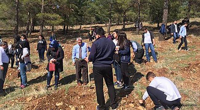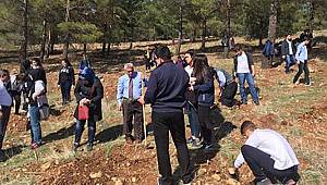 yaklaşık 500 fidan toprakla buluştu. Okul öğretmen ve öğrencilerinin büyük ilgi