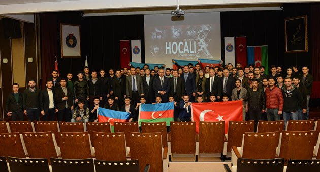 KSÜ Cahit Zarifoğlu Konferans Salonunda bu yıl 5.’si düzenlenen anma töreninin açılış konuşmasını KSÜ Öğrenci Konseyi eski Başkanı Burak Öztaş yaptı. “Tarihini bilmeyen milletlerin coğrafyasını başkaları yazar” sözünü hatırlatan Öztaş, “Amacımız dünyanın gözünü yumduğu soykırımı hatırlatmaktır. Bu bilincin sağlanmasında emeği olan ve Azerbaycan konusunda hassasiyetle duran başta Sayın Rektörümüz Prof. Dr. Durmuş Deveci’nin şahsında Üniversitemiz yönetimine teşekkür ediyoruz. Hocalı katliamı konusunda en çok program yapan ve bu konuyu en çok önemseyen üniversiteyiz” diye konuştu.