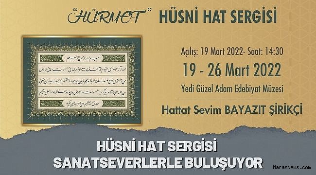 Hürmet adlı Hüsni Hat sergisinin açılışı ile ilgili Büyükşehir Belediyesi’nden yapılan açıklamada, “Vatandaşlarımız için birbirinden eğlenceli ve faydalı sosyal faaliyetler düzenlemeye devam ediyoruz. Bu kapsamda, 19 Mart Cumartesi günü Hürmet adlı Hüsni Hat sergisinin açılışı gerçekleştirilecek. Yedi Güzel Adam Edebiyat Müzesi’nde düzenlenecek sergide Hattat Sevim Bayazıt Şirikçi’ye ait birbirinden değerli eserler sanatseverlerle buluşacak. 26 Mart Cumartesi gününe kadar ziyaret açık olacak sergimize tüm vatandaşlarımız davetlidir” ifadelerine yer verildi.