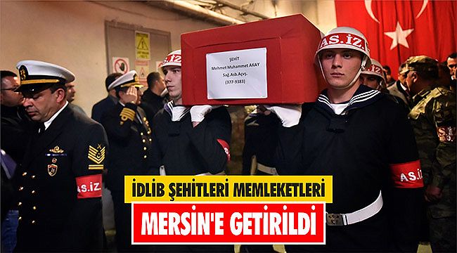 Türk bayrağına sarılı naaşları, tören mangası tarafından Mersin Büyükşehir