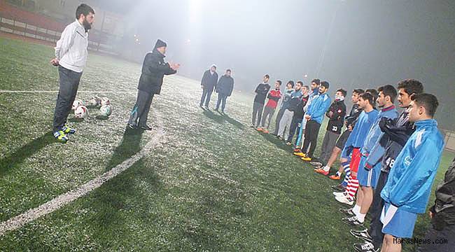 Futbol Sahasında Akşam idmanı ile top başı yapan Onikişubat İdmanyurdu Spor