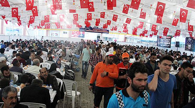 Sayın Spor Salonu önünde kurulan iftar çadırında ise 5 bin kişilik iftar yemeği