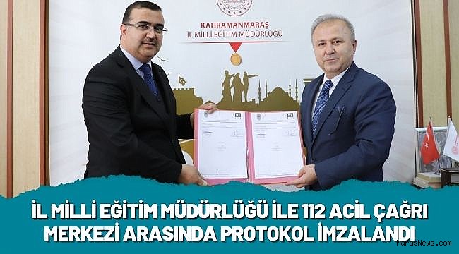 Kahramanmaraş İl Millî Eğitim Müdürlüğü'nde yapılan protokol imza törenine İl Millî Eğitim Müdürü Yusuf Kahraman ile Kahramanmaraş 112 Acil Çağrı Merkezi Müdürü Akın Ozan katıldı.