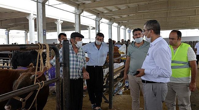 Yetiştiriciliği Şube Müdürü Osman Yakar ile pazardaki hayvanları veteriner