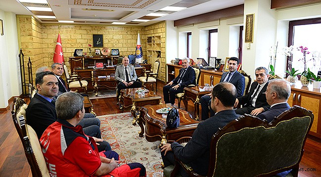 KSÜ Rektörlük makamında gerçekleşen ziyarette İl Sağlık Müdürü Öksüz, Rektör Yasım’a hayırlı olsun dileklerini iletti.
