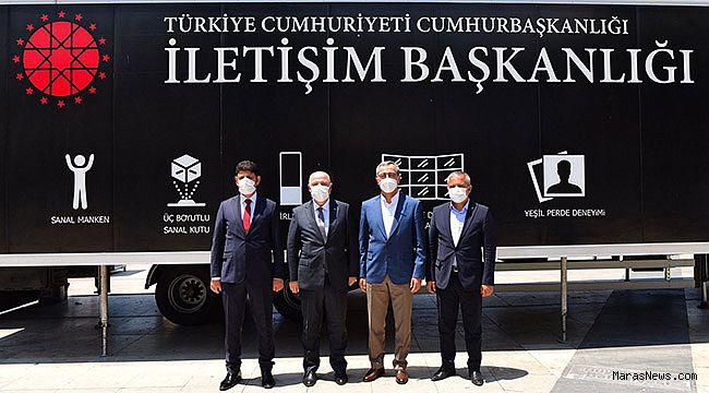 Kahramanmaraş Büyükşehir Belediye Başkanı Hayrettin Güngör, programı kapsamında Kıbrıs Meydanı’na konumlanan Cumhurbaşkanlığı İletişim Başkanlığı tarafından başlatılan proje kapsamında dijital ve teknolojik deneyim ve uygulama alanlarıyla donatılmış Dijital Tır’da incelemelerde bulundu. Başkan Güngör programın devamında bölgede faaliyet gösteren esnafları ziyaret etti. Başkan Güngör, Dijital Tır’da gerçekleştirdiği incelemelerin ardından yaptığı açıklamada, “Cumhurbaşkanlığı İletişim Başkanlığı bünyesinde faaliyet gösteren Dijital Tır Kahramanmaraş’ımızda Kıbrıs meydanında konumlandı. Hemşehrilerimiz bu tırı ziyaret ederek hem kültürel, hem milli hem de tarihi değerlerimizi dijital ortamda görme imkânı bulacak. Özellikle Türkiye’nin savunma alanında yaptığı milli üretimler hepimizin göğsünü kabartıyor. Örneğin tamamen yerli olarak ürettiğimiz İHA’ların ne kadar işe yaradığını hep birlikte görüyoruz. Burada hemşehrilerimiz ülkemizin bu kapasitesini, milli araçlarımızı nasıl ürettiğimizi ve bu araçların ne işe yaradığını dijital ortamda görerek bunları tanımış olacaklar. Bütün hemşehrilerimizin de bu tırı ziyaret etmelerini tavsiye ediyorum” ifadelerini kullandı.