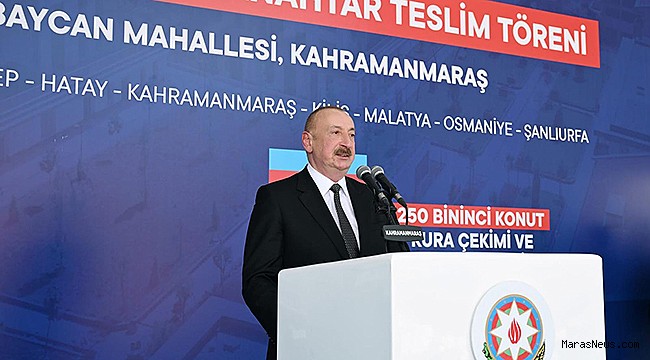 Aliyev, Perşembe günü Kahramanmaraş'ta 250 bininci afet konutunun teslim töreninde Cumhurbaşkanı Erdoğan ile birlikte halka hitap etti.