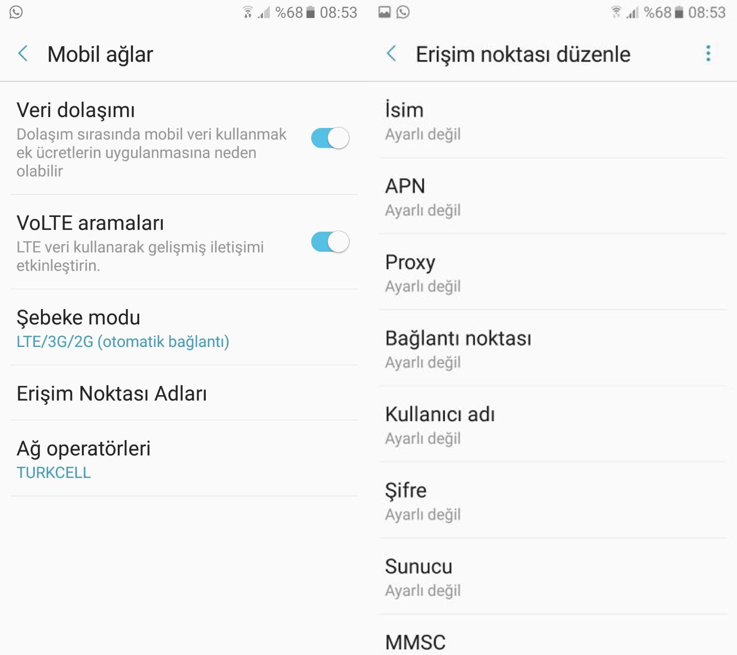 5. Adım: Bu işlemleri yaptıktan sonra profili kaydedin ve Erişim Noktası Adları bölümünden WhatsApp'ı seçin.