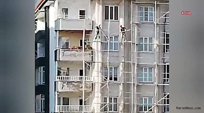 Onikişubat İlçesi Necip Fazıl Mahallesi, Alparslan Türkeş Bulvarı üzerinde yer 9 katlı binanın 8. katında çalışan işçilerin güvenlik önlemi almadıklarını fark eden vatandaşlar, yaşanan durumu cep telefonuyla görüntüleyerek, biran önce yetkililerin duruma müdahale etmesini istediler.