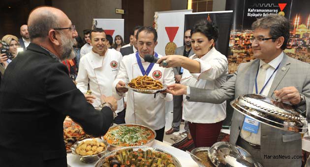 Kahraman şehrimizin başta dondurması olmak üzere, ekşili çorbasından, içli köftesine; mumbar dolmasından lezzetli kebaplarına varana kadar 121 çeşit yöresel yemekler Aşçılar Derneği işbirliği ile adeta Kahramanmaraş mutfağını İstanbul’a taşındı.