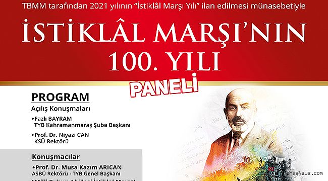 11 Mart 2021 Perşembe günü saat 14.00’de zoom uygulaması üzerinden çevrim içi olarak gerçekleştirilecek olan “İstiklal Marşı’nın 100. Yılı Paneli”, Kahramanmaraş Sütçü İmam Üniversitesi youtube kanalından da canlı yayın şeklinde izlenebilecek.