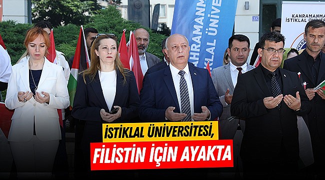 KİÜ Rektör Yardımcıları Prof. Dr. Burcu Erşahan, Prof. Dr. Seçil Fettahlıoğlu, Genel Sekreter Vekili Ferat Karataş ile akademik ve idari personel ile öğrencilerin katıldığı açıklamada, hayatını kaybeden Filistinliler için dualar edilerek İslami İlimler Fakültesi öğrencisi Melih Baltacı tarafından Kur’an-ı Kerim okundu.