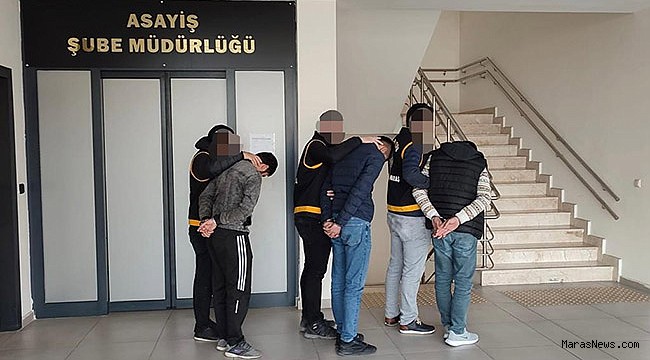 Kahramanmaraş’ta meydana gelen işyerinden ve kurumdan hırsızlık olayını gerçekleştirdiği tespit edilen A.Y., F.Y., A.T., Y.B. ve M.C.Y. isimli şüpheliler, Kahramanmaraş Cumhuriyet Başsavcılığı koordinesinde, Asayiş Şube Müdürlüğü Hırsızlık Büro Amirliğine bağlı ekiplerce, çalmış oldukları suç eşyaları ile birlikte yakalanmıştır.