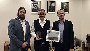 Konukoğlu Bey’i ziyaret ettik, teşekkür plaketimizi ve ABD’de fırlattığımız