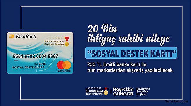 Kahramanmaraş Büyükşehir Belediyesi, Ramazan ayında örnek bir hizmeti daha hayata geçiriyor. İhtiyaç sahibi vatandaşlar için hazırlanan ‘Sosyal Destek Kart’ dağıtımı gerçekleştiriliyor. Bu projeyle ilk etapta 20 bin vatandaşa ulaşılacak. 250 TL bakiyeli ‘Sosyal Destek Kart’ ile tüm marketlerden alışveriş yapılabilecek. Dağıtım, sosyal hizmetler şube müdürlüklerince alınan taleplerle muhtarlıklar ve belirlenen noktalardan gerçekleştirilecek. Sosyal yardımlarda kişi mahremiyetini de sağlayacak bu projeyi sosyal medya hesabından duyuran Büyükşehir Belediye Başkanı Hayrettin Güngör, “İyilik kazanacak!” dedi.