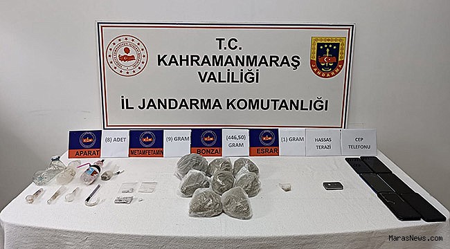 İcra edilen operasyon neticesinde; 446,50 gr Bonzai, 9 gr Metamfetamin, 1 gr Kubar esrar, 8 adet uyuşturucu madde kullanma aparatı ve 6 adet cep telefonu ele geçirildi.