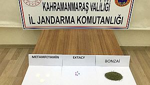toplam 60 gram Bonzai, 12 gram Metamfetamin ile 5 adet Extacy hap ele geçirildi.