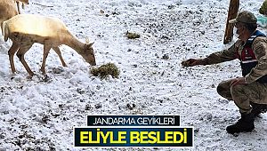 kalan geyikleri jandarma ekipleri, zaman zaman eliyle besledi.