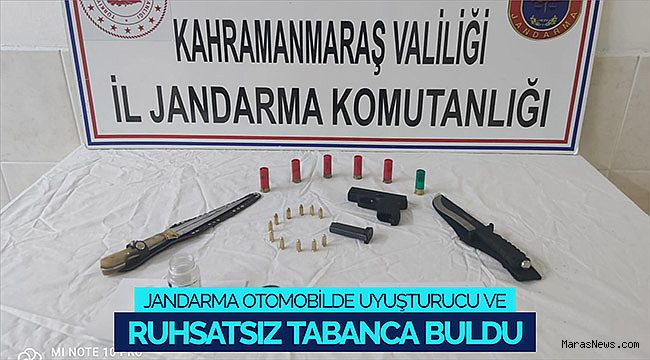 Alınan bilgilere göre, İlçeye bağlı Tombak Mahallesinde jandarma ekipleri şüphe üzerine bir otomobili durdurdu. Otomobilde arama yapan jandarma ekipleri, çeşitli miktarlarda uyuşturucu maddelerle birlikte, ruhsatsız tabanca ve tabancaya ait 11 adet mermi, 6 adet dolu kartuş, 1 adet kasatura, 1 adet el yapımı 35 cm uzunluğunda kasatura ele geçirildi. Olayla ilgili otomobilde bulunan C.K (24), O.G (33) ile O.K (34) gözaltına alınırken, 3 kişiye 1593 sayılı kanunun 282. Maddesine muhalefetten toplam 10.407 TL idari yaptırım cezası uygulandı.