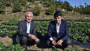 İlçe Tarım ve Orman Müdürü Uğur Adsay, Nilgün Kayıran'ın kurduğu çilek