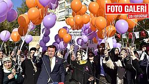 balonlar uçuruldu ve hazırlanan panoya el basılarak Kadına Şiddete Dur denildi.