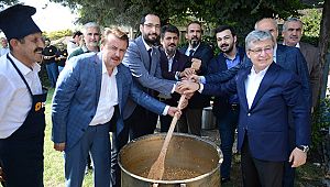 kazanlarda pişen aşurelere hem işçilere hem de kent protokolüne ikram edildi.