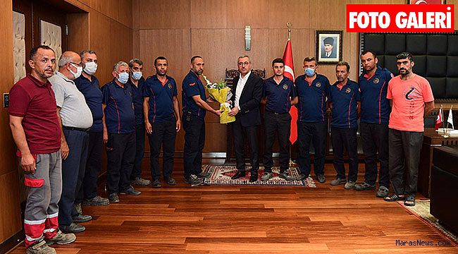 Kahramanmaraş Büyükşehir Belediye Başkanı Hayrettin Güngör, yangın bölgelerinde söndürme çalışmalarına destek veren itfaiye erleriyle bir araya geldi. Başkan Hayrettin Güngör, “Geçtiğimiz günlerde ülkemizde çok büyük bir yangınla karşı karşıya kalmıştı. Türkiye’miz bütün kurumları, itfaiye teşkilatları, gönüllüleri, orman teşkilatlarıyla müdahale etti. Biz de Kahramanmaraş İtfaiyesi olarak 6 araç 13 personelimizle illerimize buradan destek verdik. İtfaiye teşkilatımıza bölgede gerçekleştirdikleri başarılı çalışmalar sebebiyle teşekkür ediyorum. Dua ediyoruz ve diyoruz ki afetler olmasın” ifadelerini kullandı.