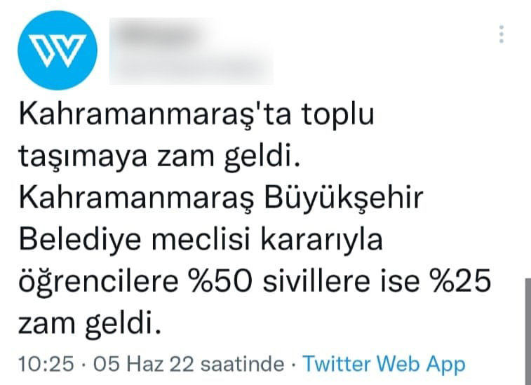 Kahramanmaraş'ta toplu taşımaya zam geldi. Büyükşehir Belediye Meclisi kararıyla öğrencilere yüzde 50, sivillere ise yüzde 25 zam iddiası sosyal medya da büyük tepkiye yol açtı.