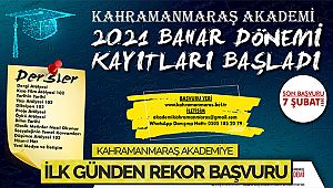 Kahramanmaraş Büyükşehir Belediyesi tarafından düzenlenen “Kahramanmaraş Akademi” eğitim programları vatandaşlardan yoğun ilgi görüyor. Toplamda 13 farklı branş ve uzman eğitmenlerle başlatılan Kahramanmaraş Akademi’nin 2. Dönem kayıtları rekor başvuru aldı. Çevrimiçi olarak yapılan eğitim başvurularına ilk 24 saatte 1.243 kişi başvurdu. Eğitimlerin yapılacağı branşlar arasında, Dergi Atölyesi, Kısa Film Atölyesi, Tarihin Tarihi, Yazı Atölyesi, Diksiyon, Proje Atölyesi, Öykü Atölyesi, Bilim Tarihi, Klasik Metinler Nasıl Okunur, Sosyolojinin Temel Kavramları, Düşünce Atölyesi, Hüsn-i Hat, Yeni Medya ve İletişim gibi çok sayıda bilimsel disiplin yer alıyor. Çevrimiçi başvuruların devam ettiği eğitimlere son başvuru tarihi 7 Şubat olarak açıklandı.