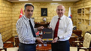 Rektör Prof. Dr. Alptekin Yasım’ı ziyaret eden Kahramanmaraş Ansiklopedisi Editörü Prof. Dr. İbrahim Solak, Rektör Yasım’a Kahramanmaraş Ansiklopedisi ve ansiklopedinin 6. cildi ile ilgili çalışmalara dair bilgiler verdi.